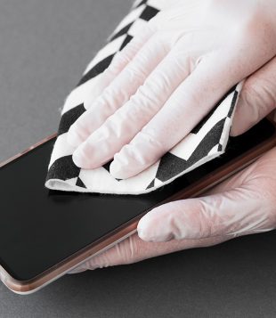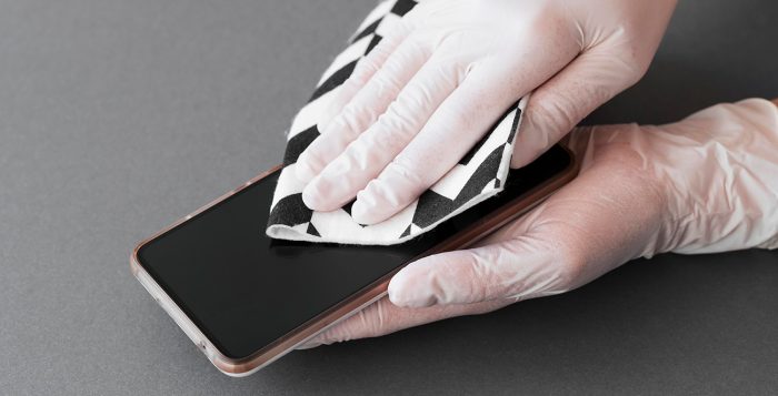 E quando falamos em higienização, está relacionado ao uso de luvas de procedimento em contato direto com o celular, a falta de limpeza do aparelho, o contato das mãos com equipamentos contaminados, entre outros.